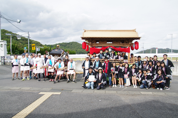 早滝比咩神社の秋祭りは、お神輿と山車が2日間地区内を練り歩き、壮年部が神輿を担ぎ、子ども会が祭りを盛り上げるシャギリを奏でます。